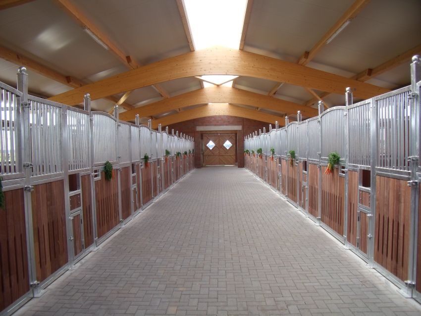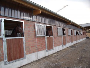 Auf der Baustelle geht es nun in die Endphase. An der Wand der Reithalle wird fleißig gearbeitet und auch die Arbeiten am zweiten Stall gehen zügig voran. Bis Mitte August soll auch hier alles fertig sein.