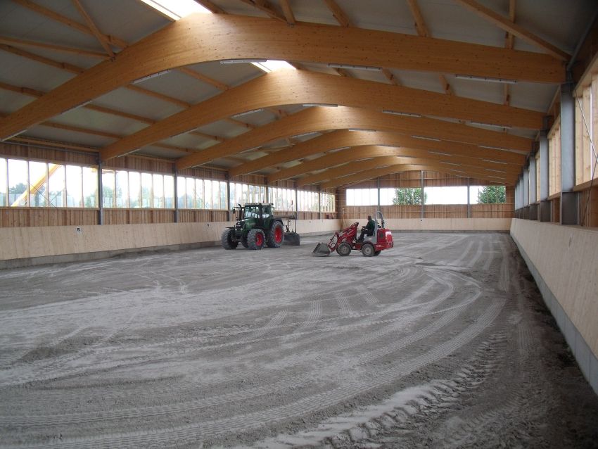 Die Bauarbeiten auf unserem Hof sind nun beinahe abgeschlossen! Der zweite Stalltrakt ist fertig und bereits voll vermietet und in der neuen 20 x 60 Meter großen Reithalle wird seit einiger Zeit schon geritten.