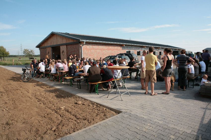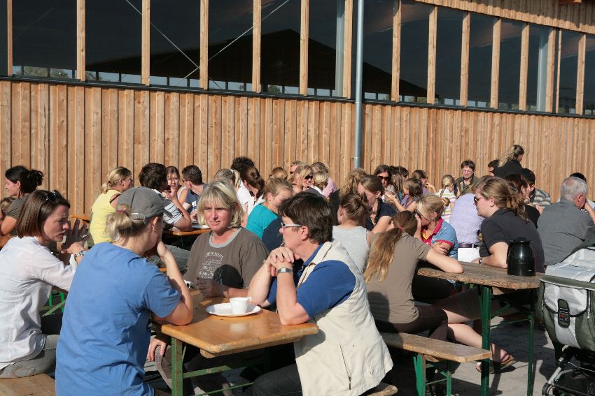 Damit sich alte und neue Einstaller kennen lernen konnten, gab es vor der eigentlichen Einweihnung schonmal ein gemütliches Beisammensein. Bei Kaffee, Sekt und unzähligen leckeren Kuchen genossen alle den herrlichen Sonnenschein und die sommerlichen Temperaturen.
